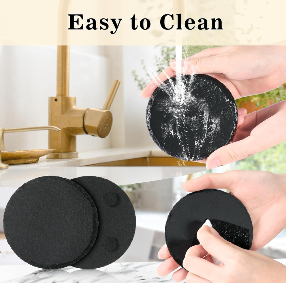 Protect your surfaces in style with this set of four personalized slate coasters. They can be customized to add a unique touch, making them perfect for gifts or personal use. Crafted from durable slate, they offer a natural, elegant look while effectively preventing water rings and heat damage. Ideal for everyday use or special occasions, these coasters combine practicality with a personal flair to enhance any space.