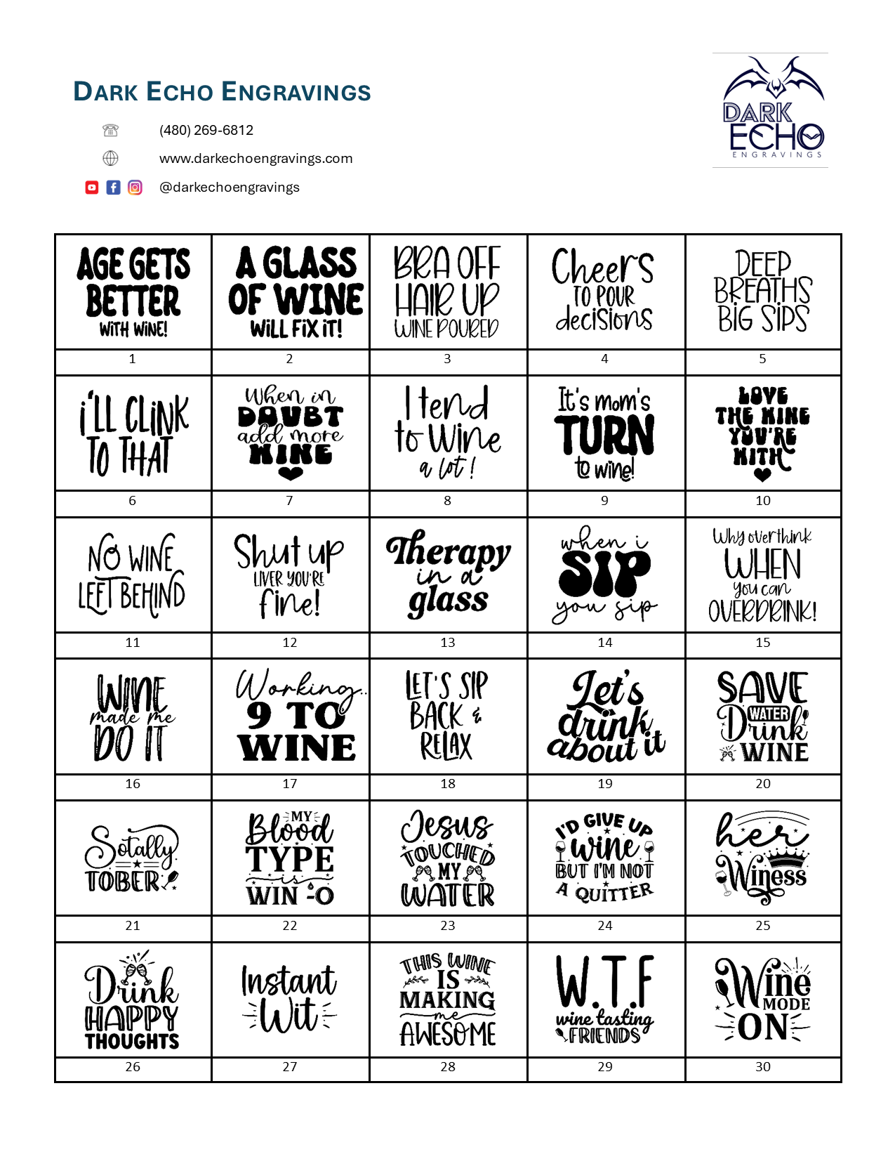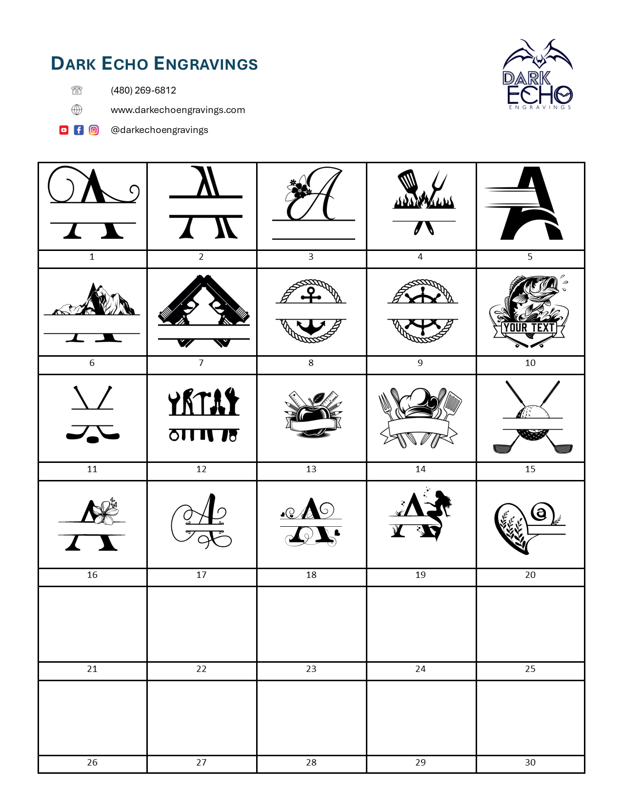 When placing an order, you have two customization options: You can either engrave your name using one of the pre-designed name styles from the name sheet, or select a picture from the picture design sheet to be engraved on the glass.
